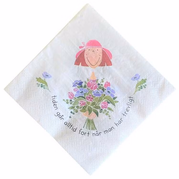 Fina servetter med tryck från originalmålningar av konstnären och illustratören Tina Järdhult. Mycket fina servetter som ger dukningen det lilla extra. Varje servett har fyra olika motiv, ett på varje flik. En fantastisk fin servett med härliga och glada färger.